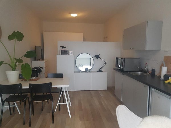 Je komt binnen via de gezamenlijke entree, van waaruit je toegang hebt tot de studio. Bij binnenkomst in de studio betreed je de ruime woon-/slaapkamer met open keuken. Daarnaast heb je vanuit de woonkamer toegang tot de badkamer en apart toilet.