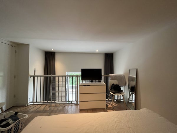 De studio heeft een ingebouwde vide. De totale vloeroppervlakte van de studio is 30m² inclusief vide. De studio is voorzien van een nette laminaatvloer, lampen, gordijnen en luxe keuken voorzien van o.a. een kookplaat, vaatwasser, koelkast, combi-magnetron en afzuigsysteem.