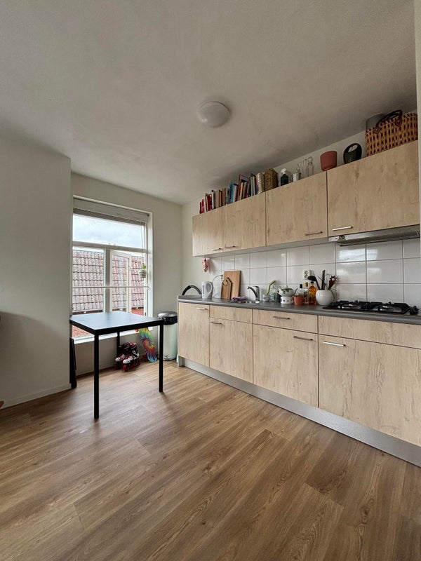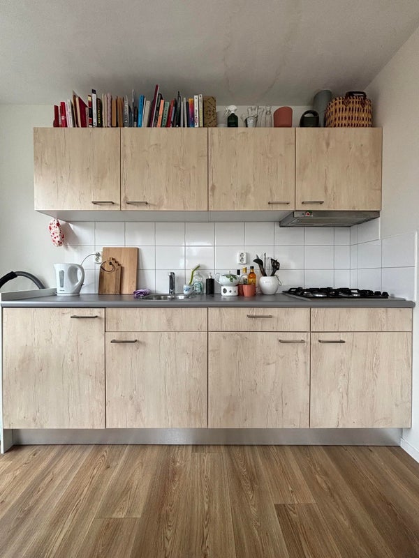 De keuken is voorzien van een koelkast, kookplaat, wasemkap en voldoende opbergruimte.