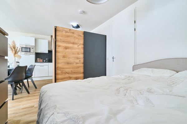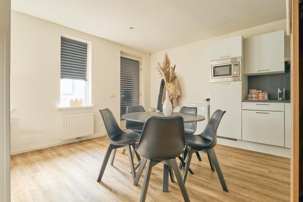 De studio heeft een eigen entree en beschikt over een lichte, open woonruimte. De PVC-vloer, nieuwe keuken en moderne badkamer maken dit een comfortabele en eigentijdse woonplek.
