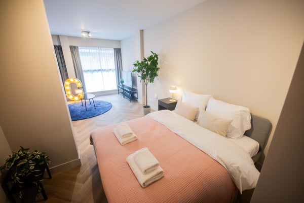 Ontdek onze moderne, volledig uitgeruste studio-appartementen die duurzaamheid, moderniteit en gemak bieden voor korte verblijven. Gelegen in het bruisende hart van Hilversum, naast restaurants, supermarkten en cafés, bieden onze appartementen een perfecte uitvalsbasis voor uw verblijf.