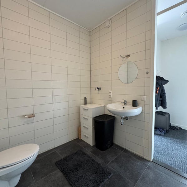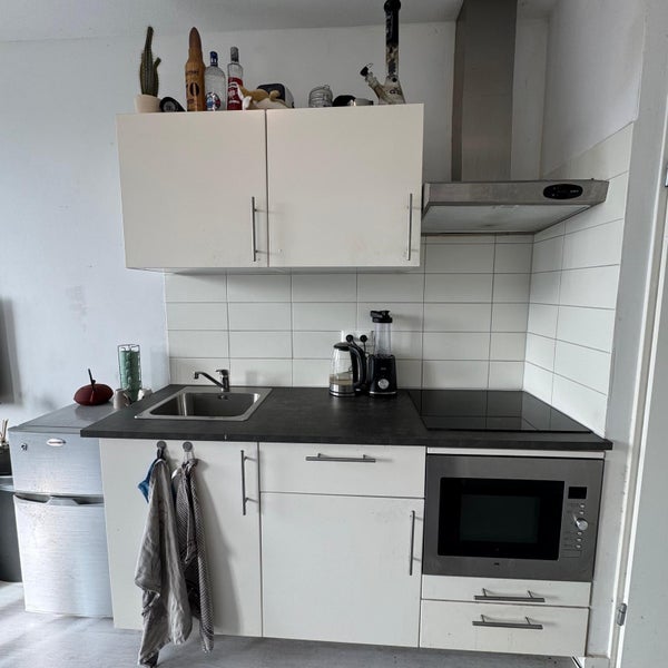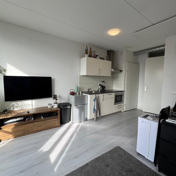 De studio heeft een woon/slaapkamer met open keuken en een aparte badkamer. De keuken is voorzien van een inductiekookplaat, afzuigkap, koelkast met vriesvakje en een combi-oven. De badkamer is voorzien van een douche, hangend toilet, wastafel, 2 stopcontacten en een wasmachineaansluiting. Daarnaast is er een gezamenlijke fietsenberging aanwezig (+/- 35 m2) die gebruikt mag worden door bewoners voor het plaatsen van fietsen/scooters.
