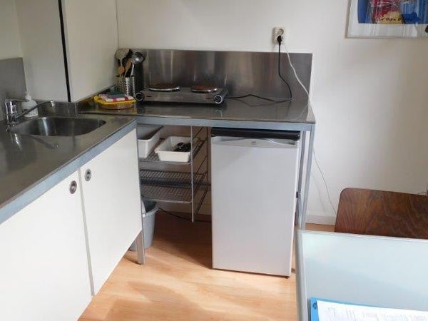 Indeling: gemeenschappelijke entree met opgang naar de verschillende studio's. Entree studio in hal. Via hal toegang tot de woon/slaapkamer en badkamer. Oppervlakte is circa 25m2. De keuken is v.v. koelkast, kookplaat, afzuigkap, combimagnetron en voldoende kastruimte. De badkamer is v.v. douche, vaste wastafel en toilet. Deze studio is compleet gemeubileerd inclusief bedlinnen en keukengerei.