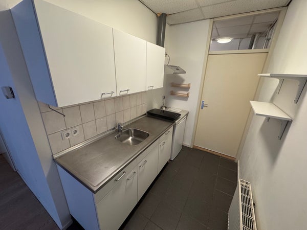 Studio met eigen keuken (met basis apparatuur) en badkamer (v.v. douche, vaste wastafel en toilet) en separate berging. Locatie op loopafstand van centrum en dichtbij het station.