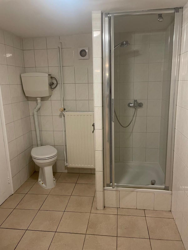Badkamer met afgesloten douche, toilet en wastafel: 4.75 m²