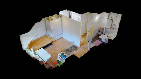 De studio heeft een 1-persoonsbed met matras, bureau en kledingkast.