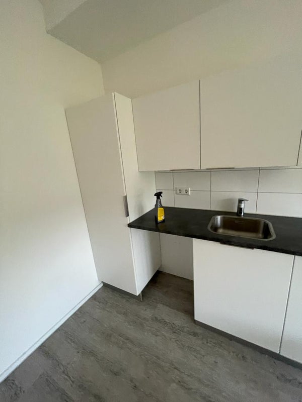 De woon-/slaapkamer is voorzien van een open keuken in lichte kleurstelling. De keuken is voorzien van een kookplaat met afzuigkap en spoelbak verder is er ruimte voor het plaatsen van een koelkast.