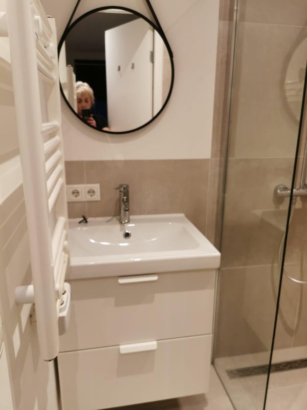 De studio heeft een eigen keuken en badkamer, het toilet wordt gedeeld in de gang.