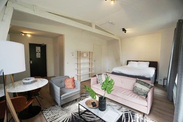 Volledig gemeubileerde en gerenoveerde Hotel Studio's variërend van 40m2 tot 50m2 met uitzicht over de Eendrachtsweg. Gelegen in hartje centrum van Rotterdam. In en rondom de bruisende straat vindt u kunst, cultuur, theater, film, de kroeg en lekker eten. Alles op nog geen stap verwijderd vanaf de voordeur. Zowel metrostation Leuvenhaven en treinstation Beurs zijn op loopafstand.