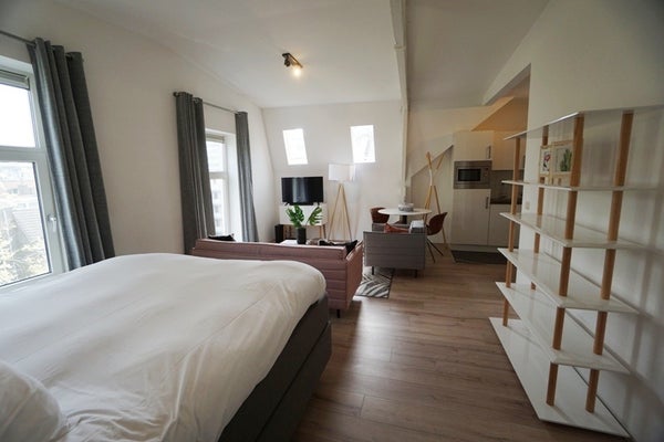 Indeling:Gezamelijke entree. Entree op de 1e/2e of 3e etage. Entree van de hotel/ studio's zijn aan de Eendrachtweg met fantastisch uitzicht over Eendrachtsplein. De studio's zijn uitgerust met een tweepersoonsbed, tweezitsbank, bijzettafel. TV. De ontbijtbar is voorzien van een koffiezet apparaat, waterkoker en koelkast optioneel een magnetron te plaatsen. De ruime luxe badkamer is voorzien van een ligbad, wastafel met spiegel en toilet. wekelijkse schoonmaak van de kamers inclusief vervanging bedlinnen en handdoeken.maximale huurperiode is 6 maandenDe foto's zijn ter indicatie. De definitieve foto's zullen spoedig geplaatst worden. Aan de weergegeven foto's kunnen geen rechten ontleend worden*