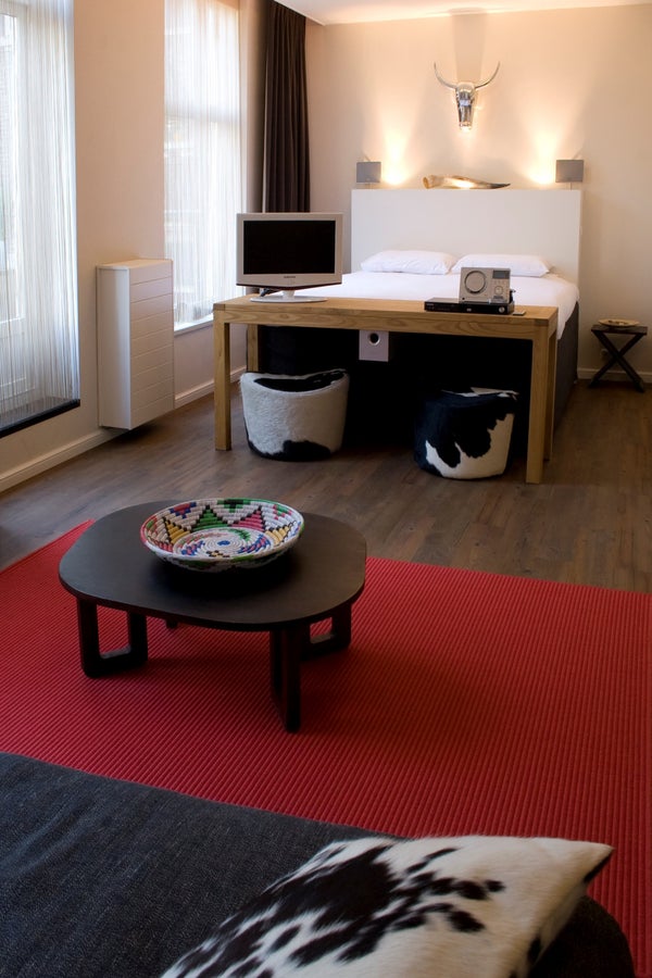 Indeling:Gezamelijke entree. Entree op de 1e/2e of 3e etage. Entree van studio welke gelegen is aan de voorzijde met fantastisch uitzicht over de Witte de With of aan de achterzijde. De studio's zijn uitgerust met een tweepersoonsbed, tweezitsbank, bijzettafel en TV. De ontbijtbar is voorzien van een koffiezet apparaat, waterkoker en koelkast. De badkamer is voorzien van een ligbad, wastafel met spiegel en toilet.Wekelijkse was service van eigen wasgoed, bedlinnen en handdoeken.