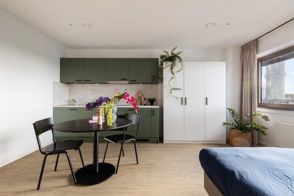 Living in Holland biedt 250 moderne, ingerichte studio’s, kamers en appartementen die volledig zijn gemeubileerd en direct klaar zijn voor gebruik. Iedere ruimte is ontworpen voor optimaal comfort en efficiëntie, zodat jij ontspannen kunt wonen in een van de levendigste buurten van de stad.