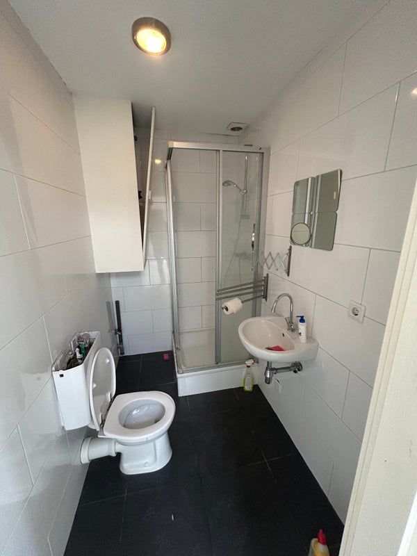 Naast de leefruimte is er een afgesloten badkamer voorzien van een douche, toilet en wastafel, alles wat je nodig hebt binnen handbereik.