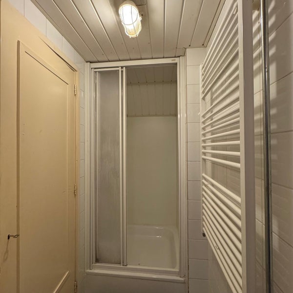 De kamer is recent voorzien van een nieuwe laminaatvloer en heeft een eigen keuken (10m2) en een aparte woon/slaapkamer (15m2). De studio heeft een eigen badkamer, toilet en bergkast.