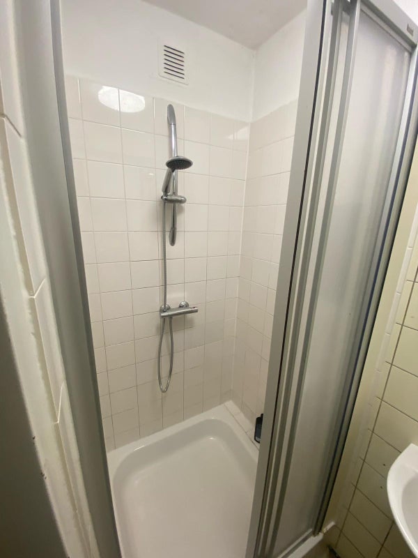 De badkamer wordt gedeeld met de medebewoners en is modern en netjes afgewerkt.