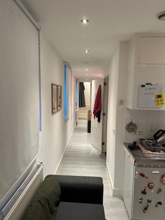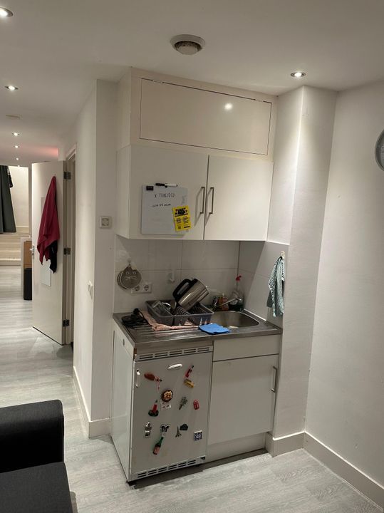 Indeling Via een gezamenlijk entree bereik je de gezamenlijke keuken. Deze wordt gedeeld met de andere bewoners en hier heb je de mogelijkheid tot koken. De semi-studio is gelegen op de eerste etage en heeft een kitchenette met koelkast en kastruimte. Tevens beschikt deze woonruimte over een eigen badkamer. Deze is voorzien van een wastafel, douche en toilet. Het woongedeelte is opgedeeld in 2 delen. Waardoor je een aparte slaapkamer kan creëren.
