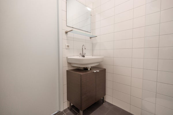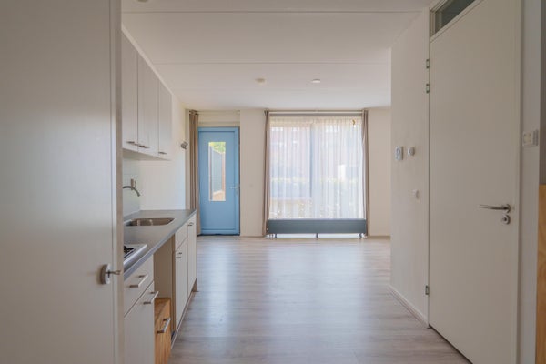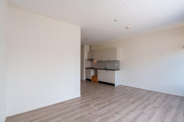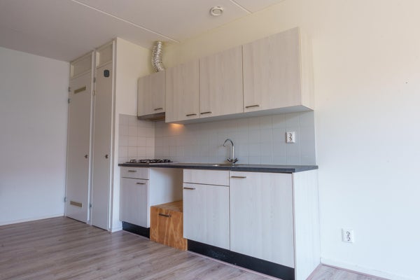Via de gemeenschappelijke entree met intercom en brievenbussen kom je het complex binnen. De studio beschikt over een woon-/slaapkamer met grote ramen en een open keuken met kookplaat, afzuigkap en koelkast. De badkamer is voorzien van een douche, toilet en wastafel. Op de begane grond vind je een gezamenlijke wasruimte met wasmachine en droger. Fietsen kunnen veilig gestald worden in de gemeenschappelijke fietsenberging, bereikbaar via een elektrische poort.