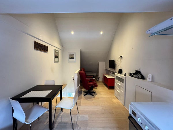 Deze sfeervolle studio biedt alles wat je nodig hebt om comfortabel te wonen. De ruimte is slim ingedeeld en voorzien van een nette afwerking. Via een vaste trap bereik je de woon-/slaapruimte met een lichte uitstraling en praktische indeling.