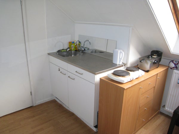 In het pand bevinden zich 6 kamers. Deze semi-studio ligt op de tweede etage en bestaat uit 3 ruimtes: een woonkamer met open keuken, een aparte slaapkamer en een overige ruimte.